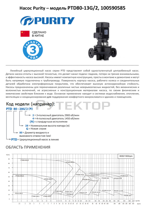 Циркуляционный насос In-Line PURITY PTD80-13G/2 (N) предназначен для перекачивания чистых невзрывоопасных жидкостей, без механических и волокнистых включений, не агрессивных к конструкционным материалам насоса, по своим физическим и химическим свойствам близким к воде.